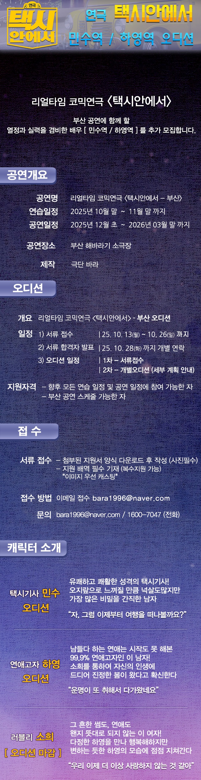 연극 < 택시안에서 > - [ 민수역 / 하영역 ] 배우 오디션 - 부산