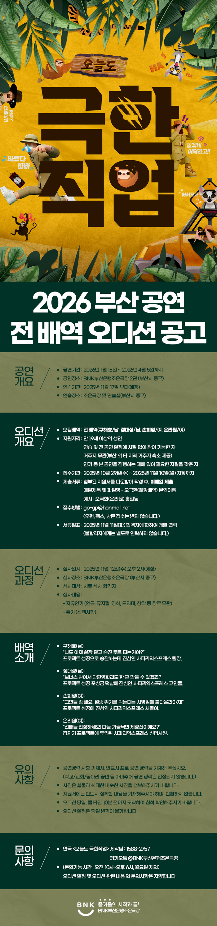 2026 연극 <오늘도 극한직업> 전 배역 모집