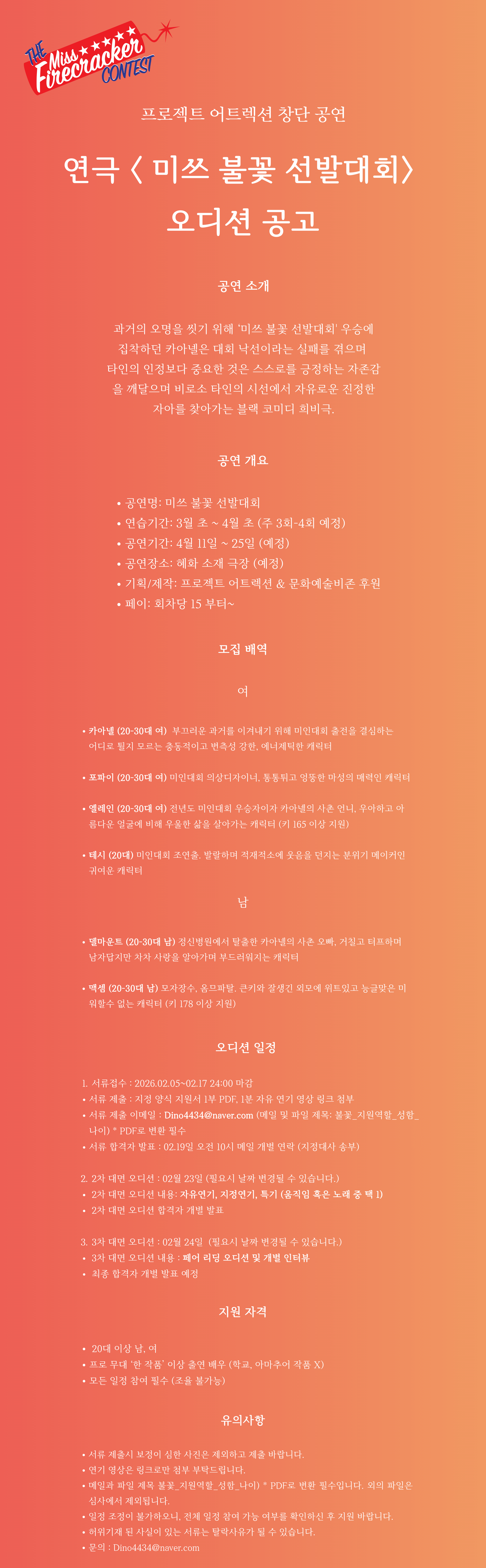 2026 연극 <미쓰 불꽃 선발대회> 공개 오디션