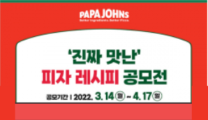 | 참가대상 | 누구나 , 유치원 , 초등학생 , 중학생 , 고등학생 , 대학생 , 대학원생 , 일반인 , 외국인 , 해당자 ▶ (파파존스 점주 & 고객 누구나 ) |