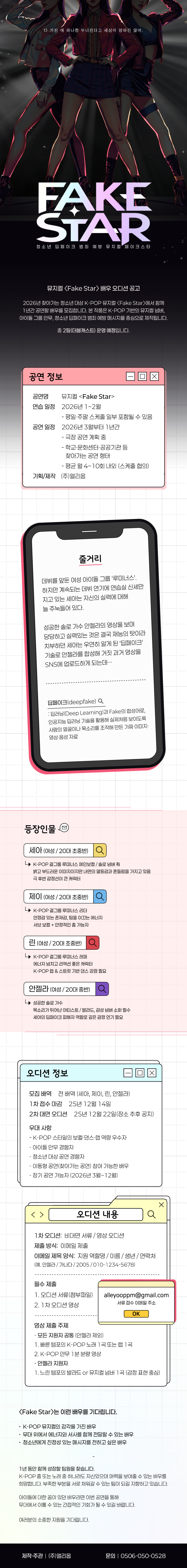 2026 K-POP 뮤지컬 <FAKE STAR> 전배역 오디션