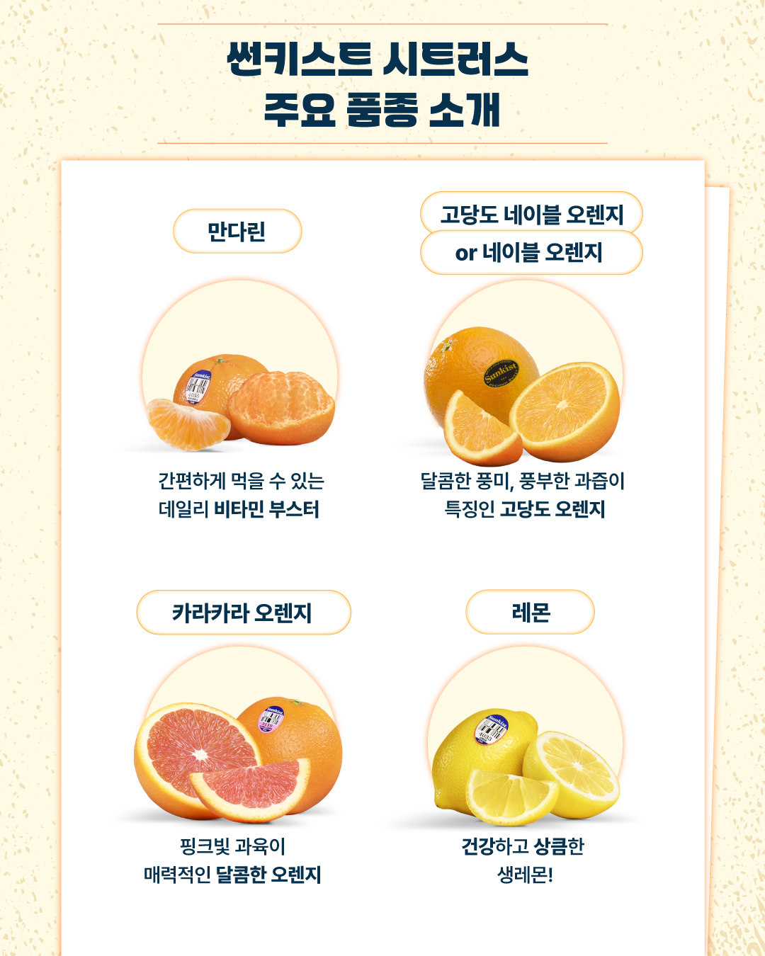 + 썬키스트 시트러스의 색감과 신선함이 돋보이도록 플레이팅에 신경 써보세요. 비주얼 완성도가 중요합니다.