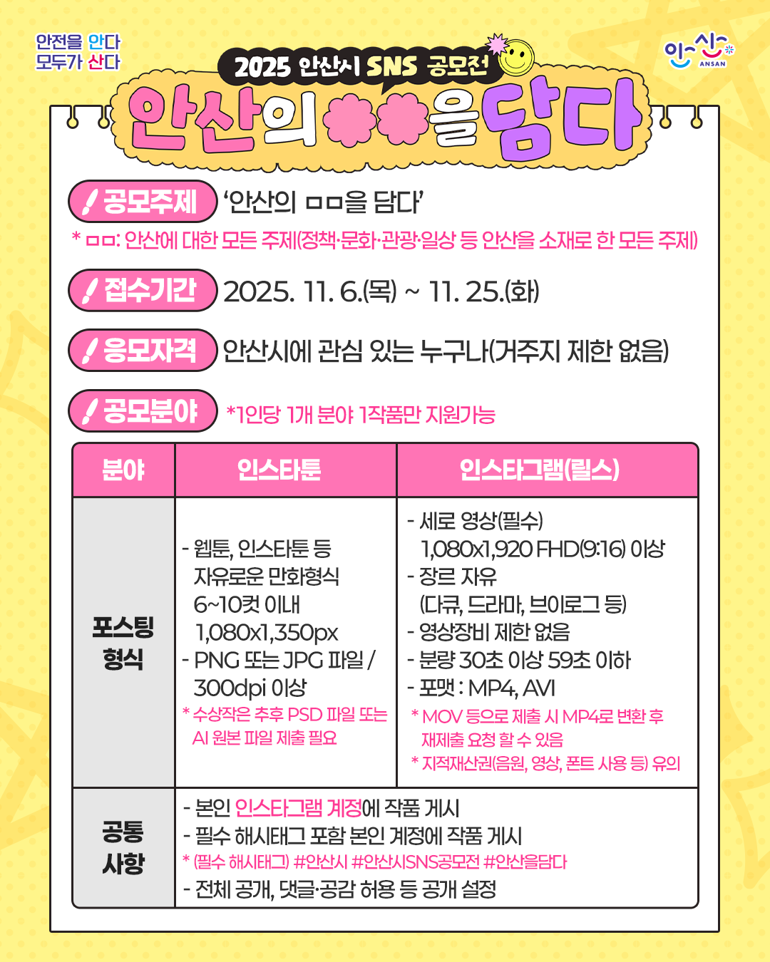 *ㅁㅁ: 안산에 대한 모든 주제(정책·문화·관광·일상 등 안산을 소재로 한 모든 주제)