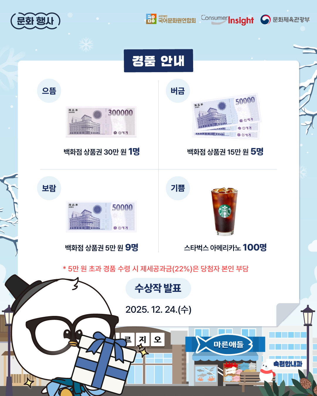 - 기쁨상 : 스타벅스 5천 원 100명