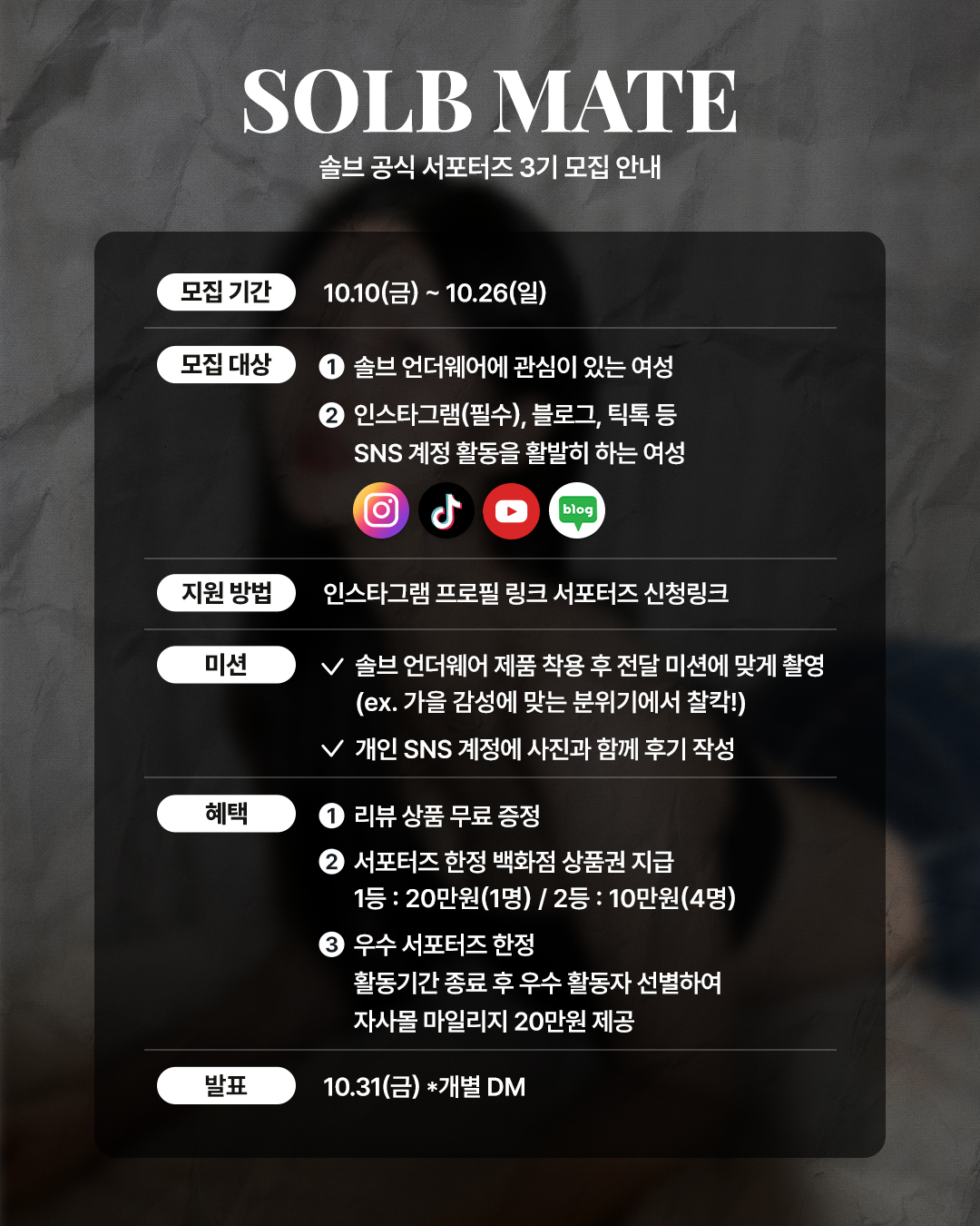 SOLB MATE 솔브 공식 서포터즈 3기 모집
