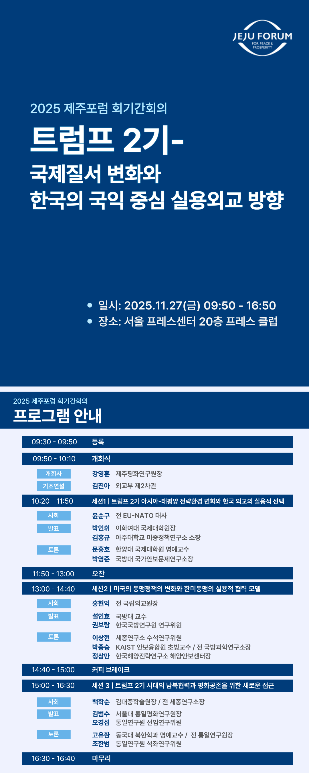 - 주제: 트럼프 2기 국제질서 변화와 한국의 국익 중심 실용외교 방향
