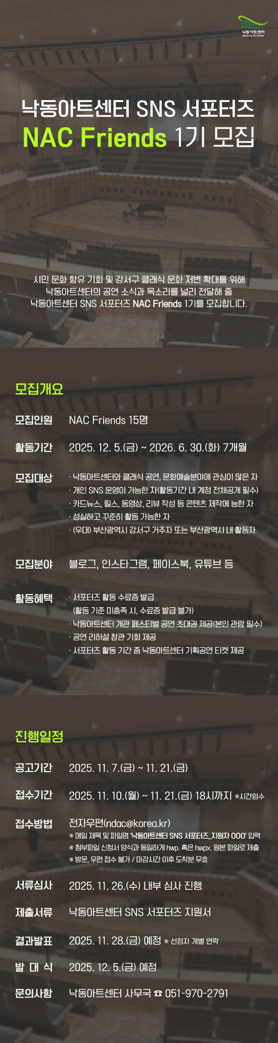 낙동아트센터 SNS 서포터즈 NAC Friends 1기 모집 공고