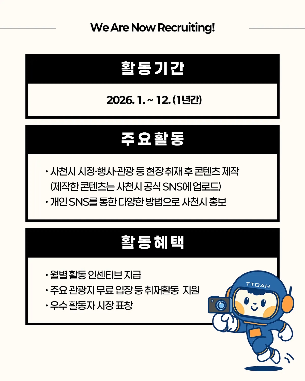 2026년 제11기 사천시 SNS 서포터즈 모집