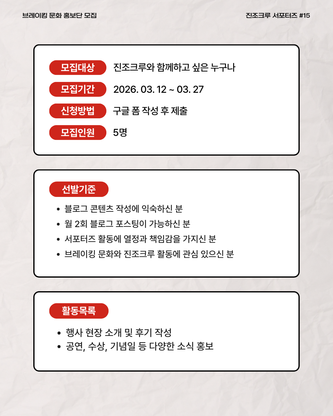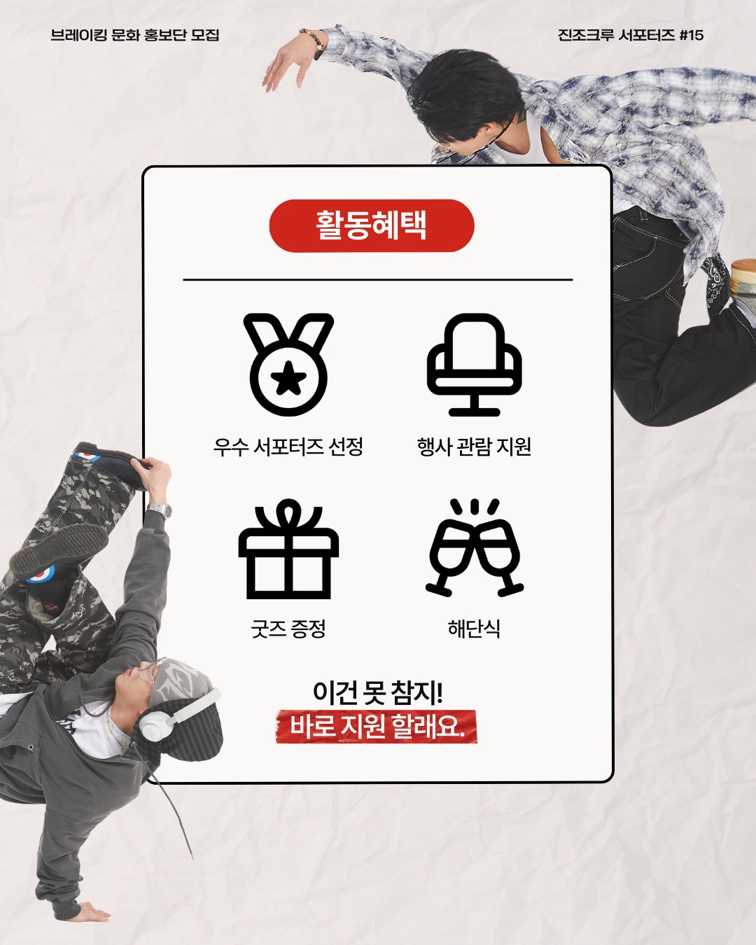 브레이킹 문화 홍보•체험단 '진조크루 서포터즈 15기' 모집