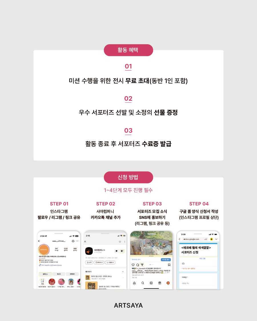- 미션 수행을 위한 전시 무료 초대(동반 1인 포함)