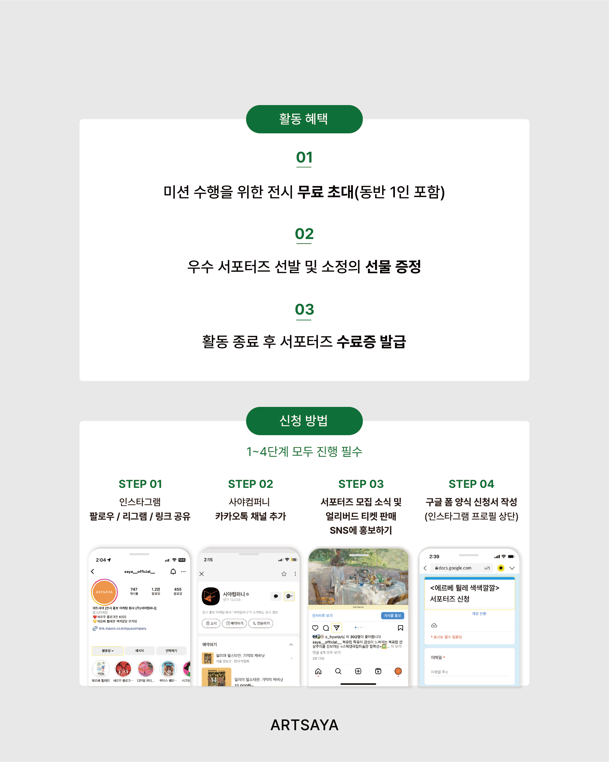 - 전시 관람 후 SNS 콘텐츠 제작 및 업로드