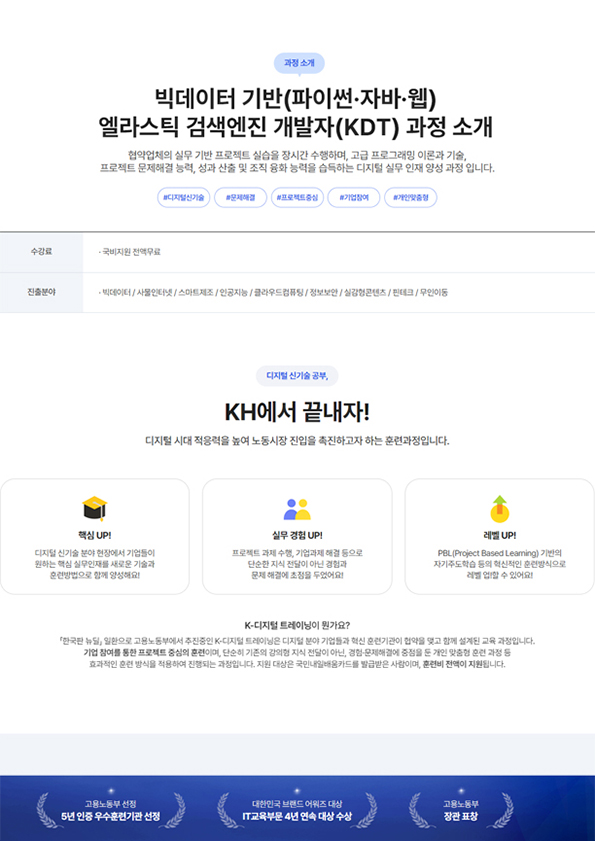 • KH정보교육원 전 지원 최우수/우수훈련기관 선정