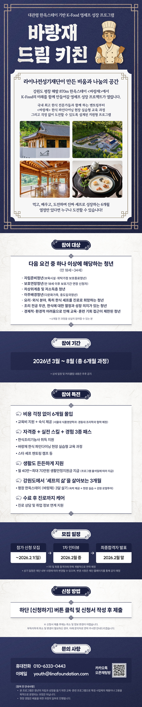 휴대전화 : 010-6333-0443 / 이메일 : youth@linafoundation.com