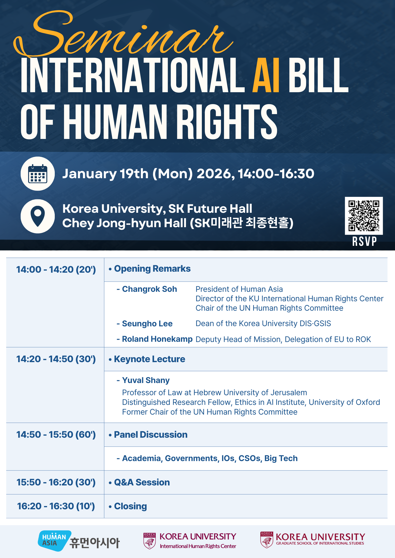 | 주최 . 주관 | 휴먼아시아, 고려대학교 국제인권센터, 고려대학교 국제대학원 |