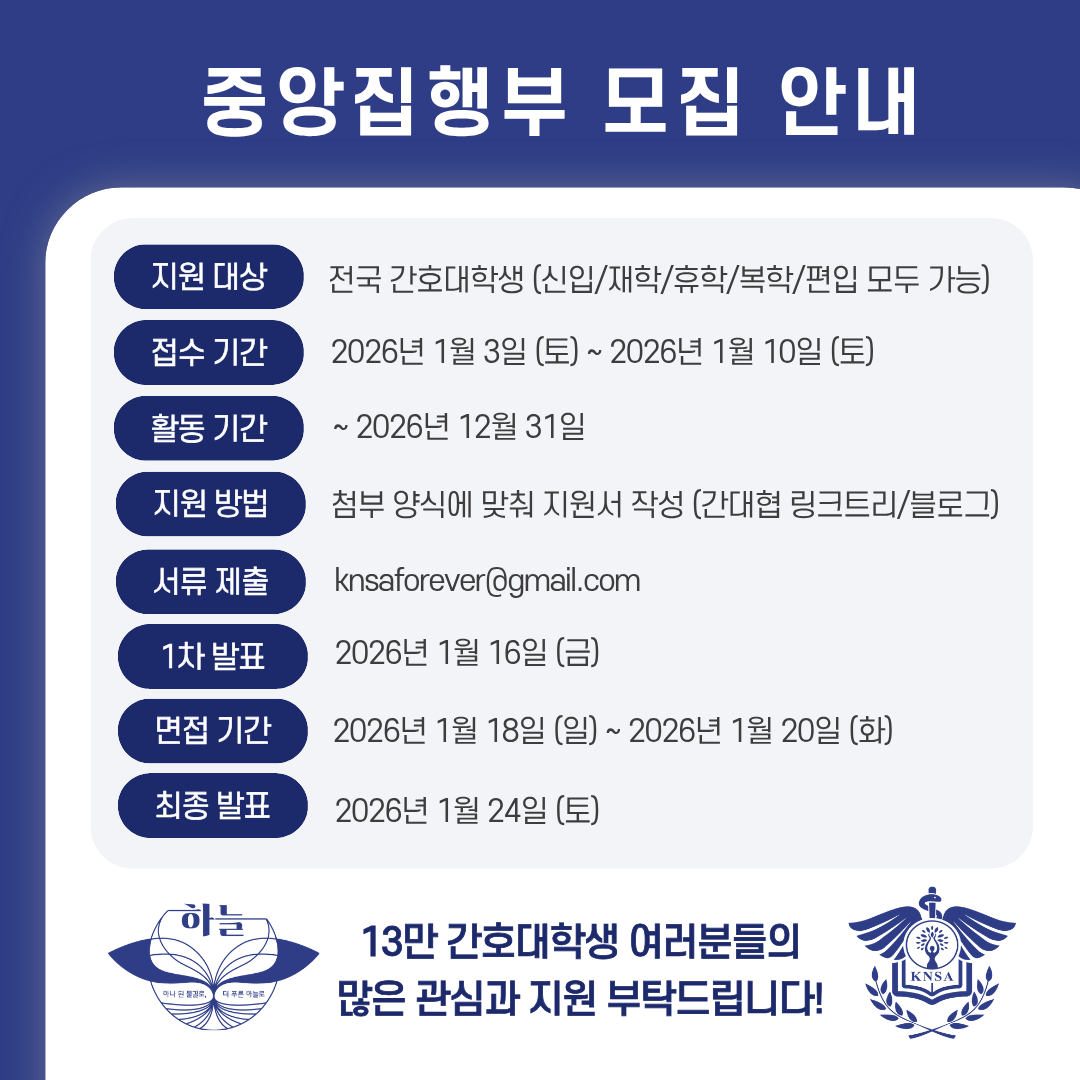 - 지원서 제출: knsaforever@gmail.com