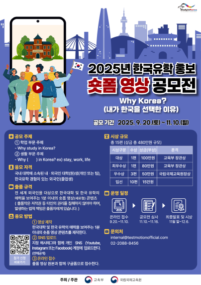 2025년 한국유학 홍보 숏폼 영상 공모전