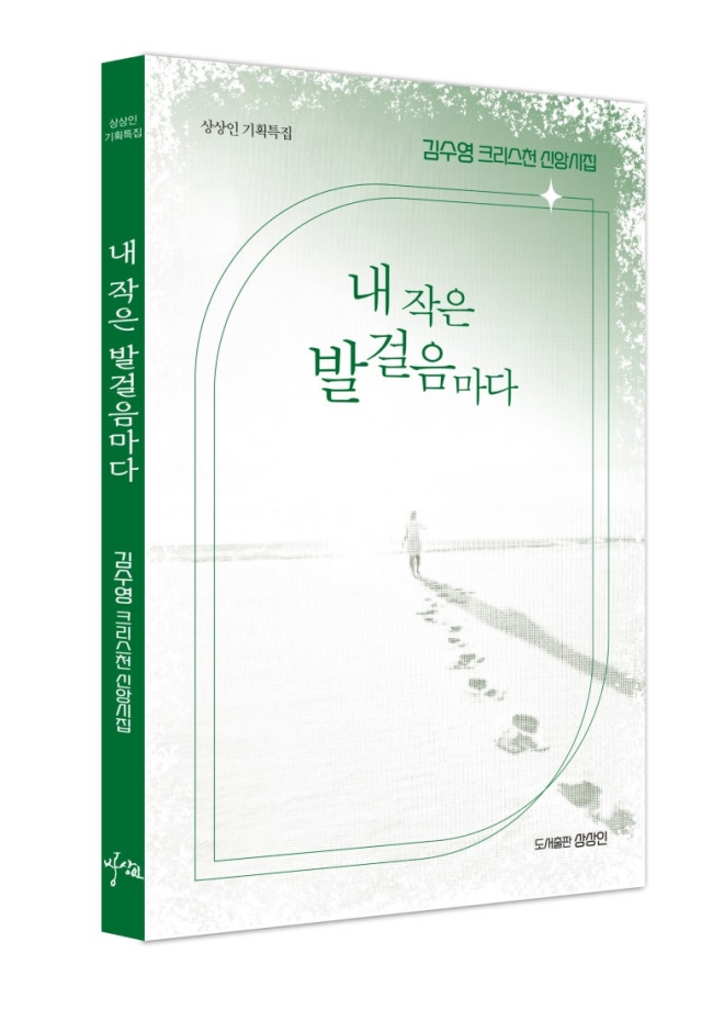 김수영 크리스천 신앙시집 지은이 김수영 | 2026년 03월 18일 발간 | 정가 12,000원 | 140*210 | 140쪽 ISBN 979-11-7490-046-3(03810) 도서출판 상상인 | 등록번호 572-96-00959 | 등록일자 2019년 6월 25일 (06621) 서울시 서초구 서초대로 74길 29, 904호 Tel. 02 747 1367, 010 7371 1871 |Fax. 02 747 1877 | E-mail. ssaangin@hanmail.net