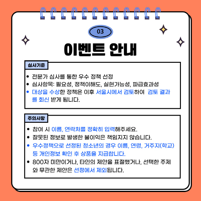 2025 서울시 청소년 정책제안 이벤트 안내드립니다.