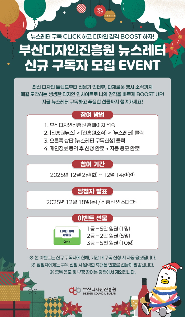 ![]() 부산디자인진흥원 뉴스레터 신규 구독자 모집 EVENT!