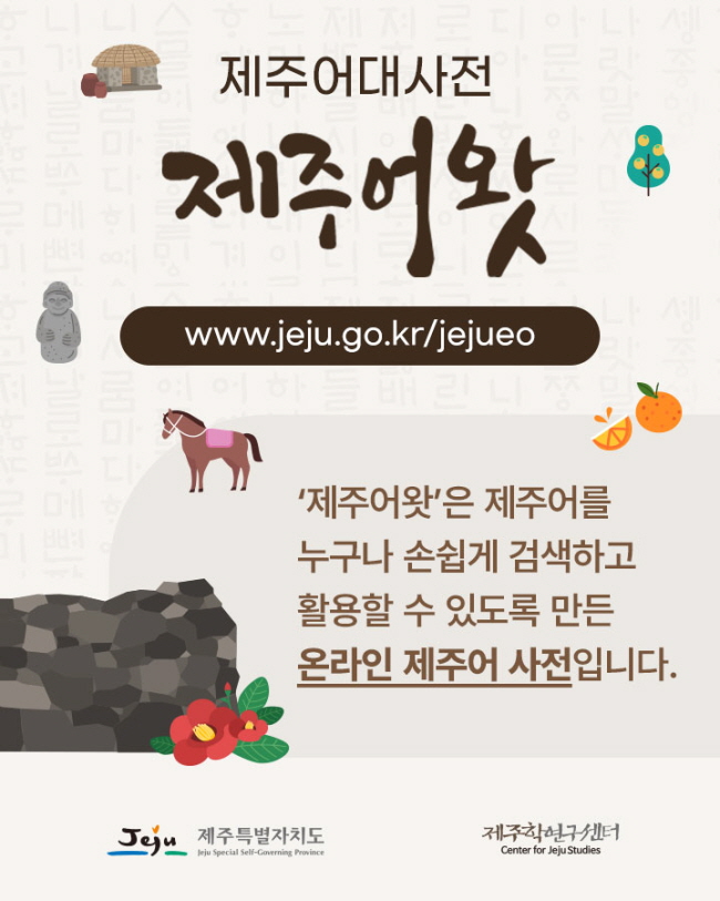 ![]() 제주어대사전 제주어왓 서비스 개통을 기념하여 SNS 게시 이벤트를 진행합니다.