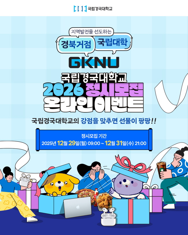 국립경국대학교 2026학년도 정시모집 온라인 이벤트 국립경국대학교의 강점을 맞추면 선물이 팡팡!!