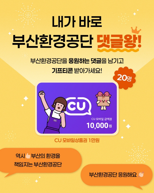 부산환경공단 10월 인스타그램 콘텐츠에 좋아요와 댓글을 가장 많~이 남겨주신 댓글왕에게 CU 모바일상품권을 드려요!