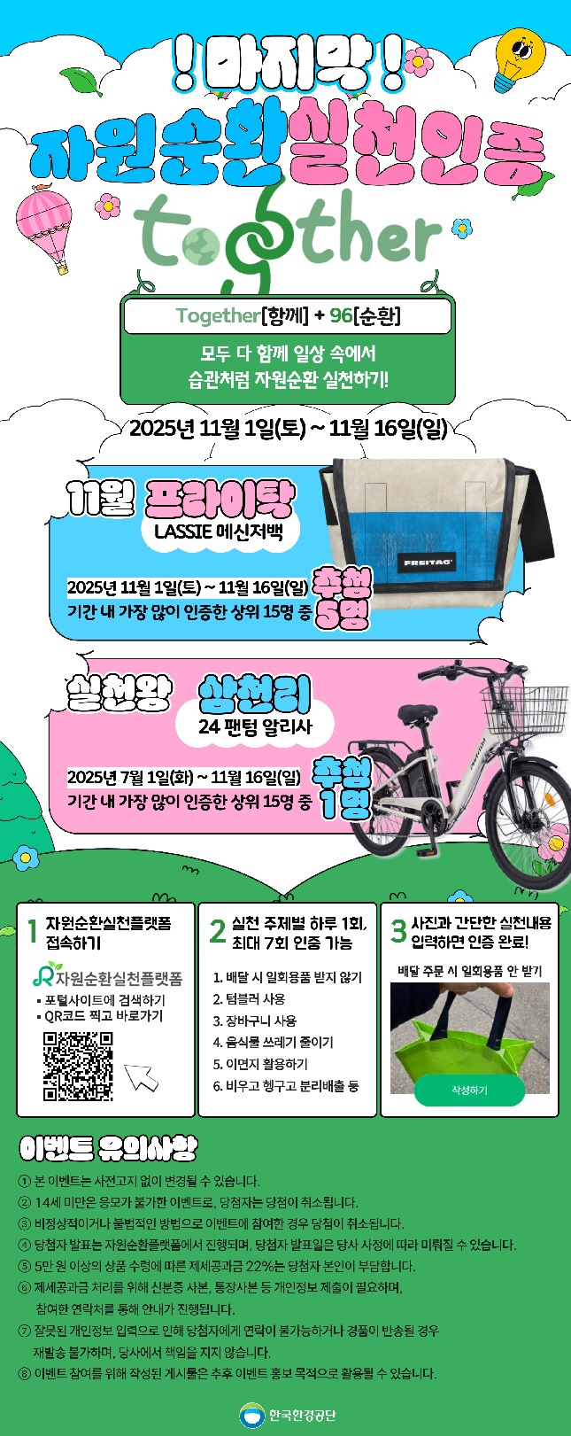 [이벤트] 11월 자원순환실천인증 to96ther 누적챌린지(25.7.1~25.11.16)
