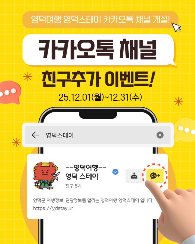 영덕 여행의 즐거움을 더 쉽게 만나볼 수 있도록 영덕여행 정보 채널 '영덕스테이' 카카오톡 채널이 새롭게 오픈했어요!