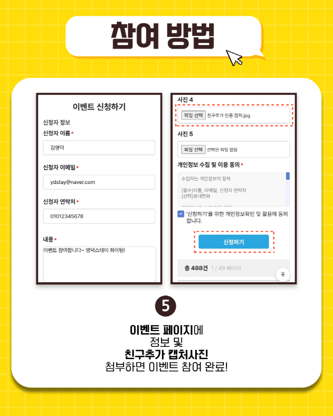 친구추가 인증페이지 바로가기 https://ydstay.kr/trip-info/eventRequestForm