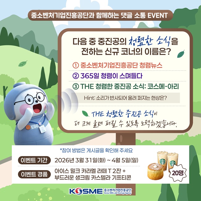 ① 중소벤처기업진흥공단 청렴뉴스 ② 365일 청렴이 스며들다 ③ THE 청렴한 중진공 소식: 코스메-아리