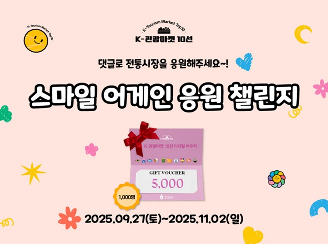 칭찬 or 응원 댓글을 남겨주면 K-관광마켓 10선 바우처 5,000원권을!! |