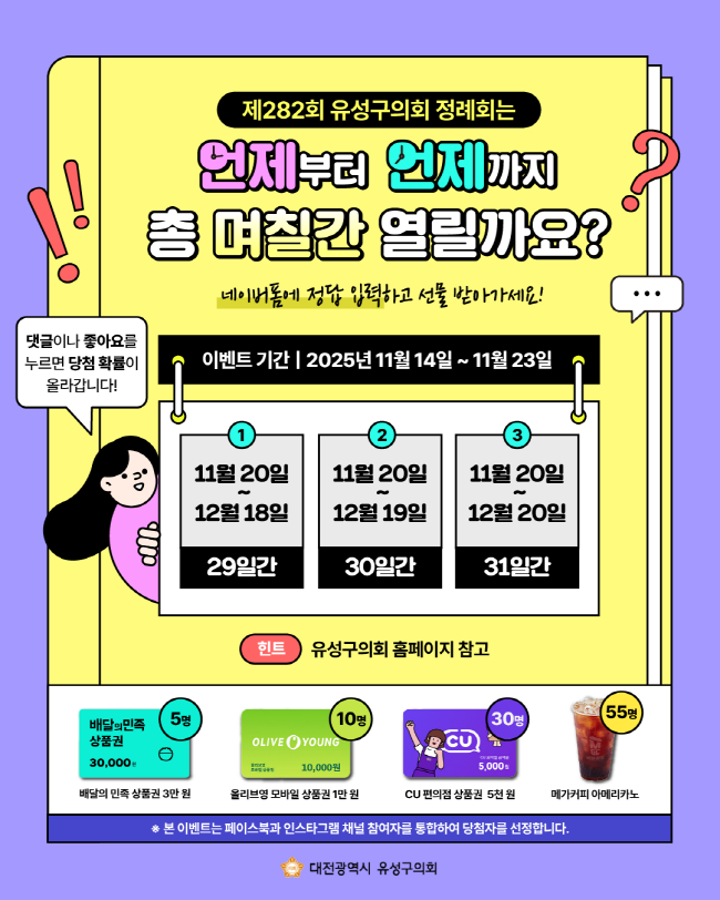 ⭐EVENT⭐ 유성구의회 제282회 정례회 기간 맞추기 이벤트