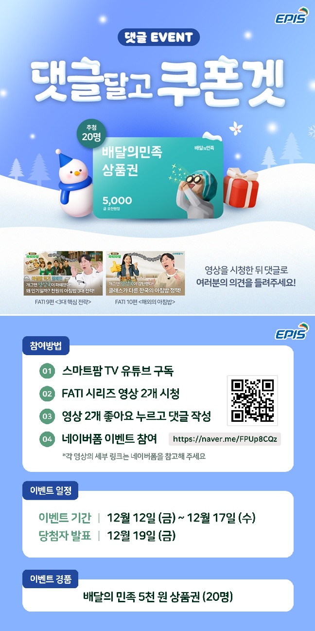 경품 : 배달의민족 상품권 5,000원권 (20명)