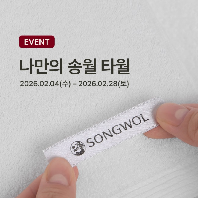 ![]() ※ 본 이벤트는 송월 인스타그램 참여 기준으로 선정됨을 알려드립니다. ※ 매일 함께하는 송월 타월에 어울리는 별명을 지어주세요 : ) 추첨을 통해 송월 타월 10매 1세트를 선물로 드립니다. ㅡㅡㅡㅡㅡㅡㅡㅡㅡㅡㅡㅡㅡㅡㅡㅡㅡㅡ [지원 자격] 누구나 참여 가능 (성별, 연령 제한 X) [이벤트 경품] 송월 타월 세트 10매 1세트 (10명) [진행 일정] 참여기간 : 2026.02.04 (수) ~ 2026.02.28 (토) 당첨발표 : 2026.03.03 (화) 인스타그램 개별 DM 안내 [참여 방법] 1. @songwol__official 인스타그램 팔로우 2. 내가 사용중인 송월 타월 사진 찍기 3. 타월 별명 + 이유 작성 4-1. 인스타그램 게시물 업로드 시 송월 계정 태그 + 필수 해시태그 4-2. 인스타그램 스토리 업로드 시 송월 계정 태그 + 필수 해시태그 [필수 해시태그] #송월 #송월타월별명 #TimelessStandard * 송월 공식 인스타그램에서 확인해 보세요! https://www.instagram.com/p/DUUmFtqD8l7/ [유의사항] • 본 이벤트를 통해 참여자가 직접 촬영하며 제출한 콘텐츠를 송월(운영사 포함)의 공식 채널 및 홍보 목적의 콘텐츠로 활용될 수 있습니다. • 참여 방법 및 기간 준수자 중 추첨을 통해 선정합니다. • 비공개 및 이벤트 계정은 추첨 대상에서 제외됩니다. • 제품은 랜덤 배송되며, 교환 및 환불은 불가합니다. • 당첨자는 인스타그램 DM 으로 개별 안내되며, 미회신 시 당첨이 취소될 수 있습니다. Timeless Standard SONGWOL