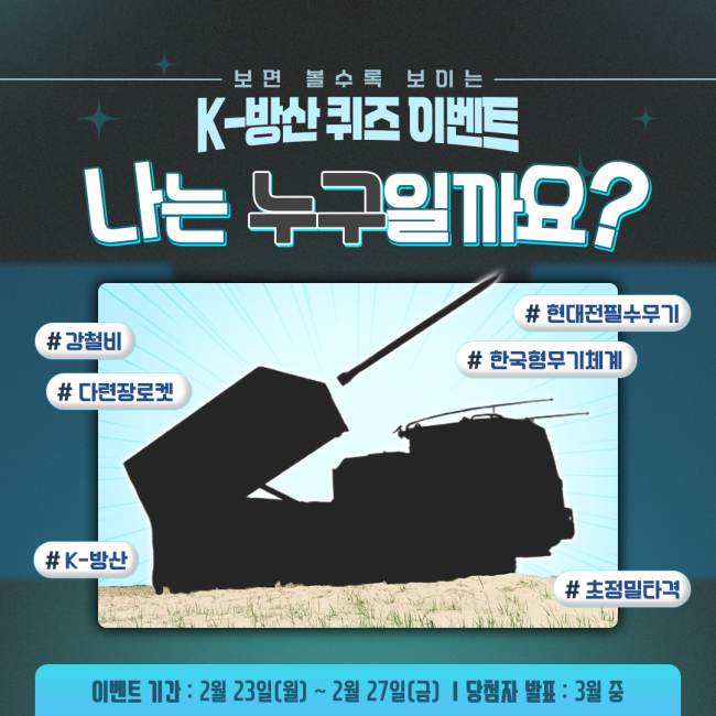 ![]() ![]() 한국방위산업진흥회 K-방산 퀴즈이벤트