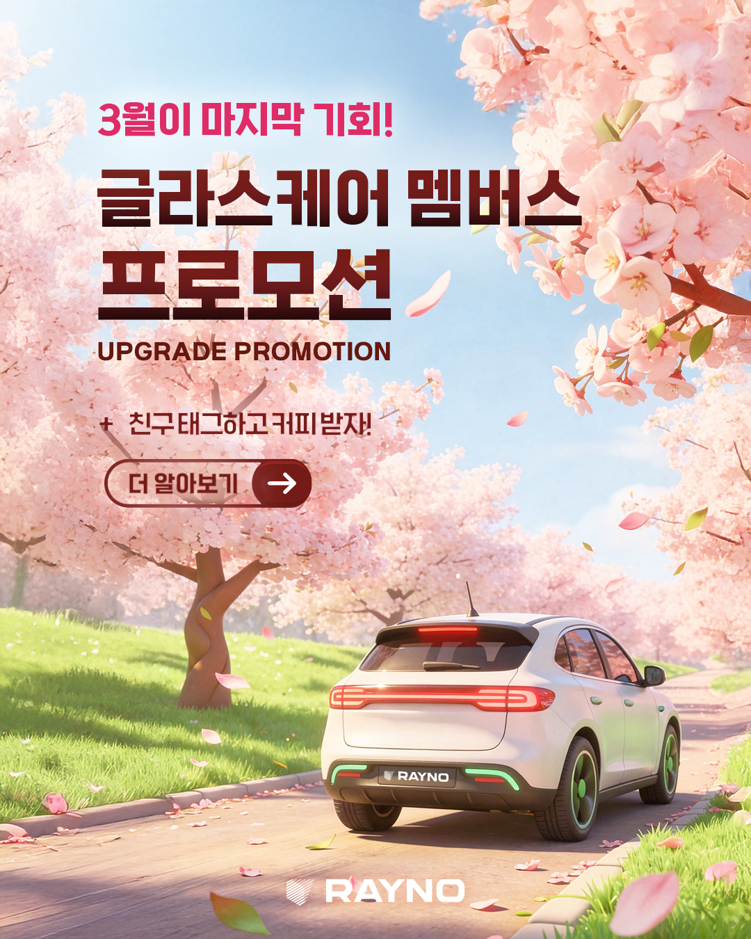 ️ 참여 방법 1️⃣ 레이노 공식 계정(@rayno.korea) 팔로우 하고, 2️⃣ 댓글에 같이 벚꽃 구경 가고 싶은 친구를 태그하면 완료!