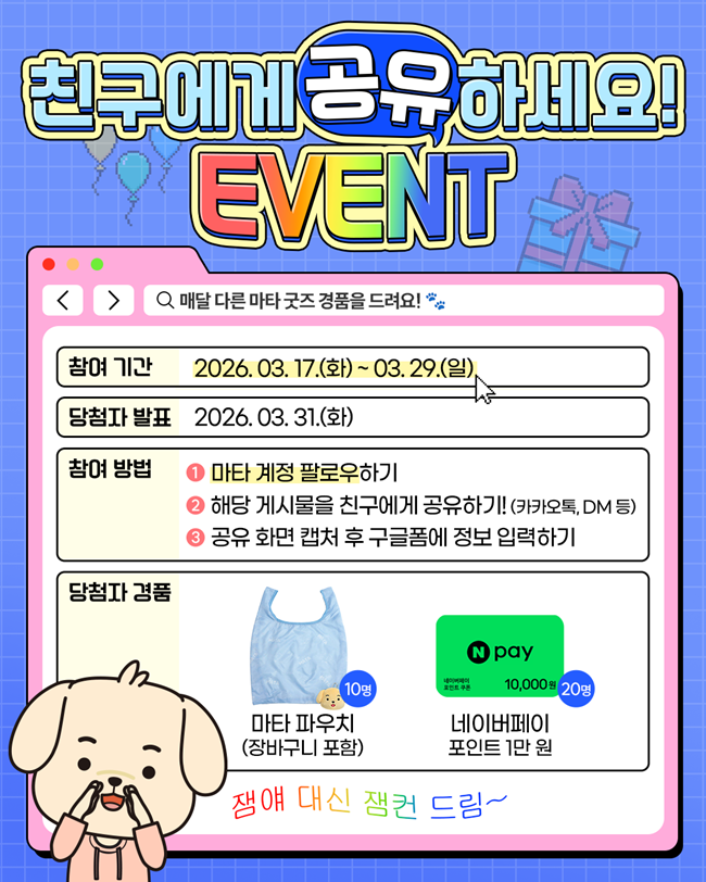 이벤트 참여 기간 : 2026. 03. 17.(화) ~ 03. 29.(일)