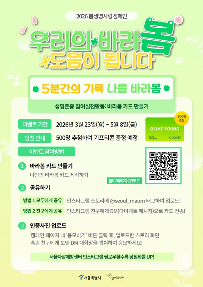 참여 혜택 추첨을 통해 총 500분께 올리브영 상품권을 드립니다. |
