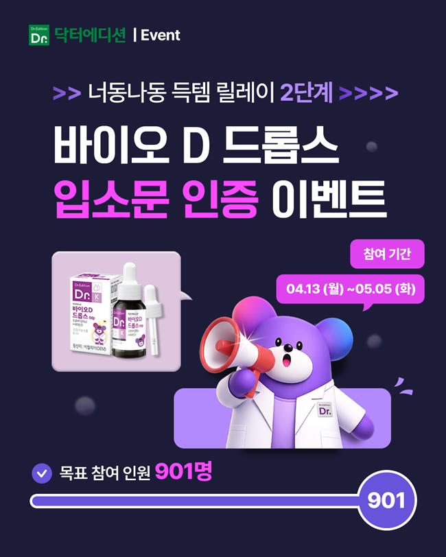 - 901명 달성 시 : 앤디베어 이유식 가운 (100명 추첨)
