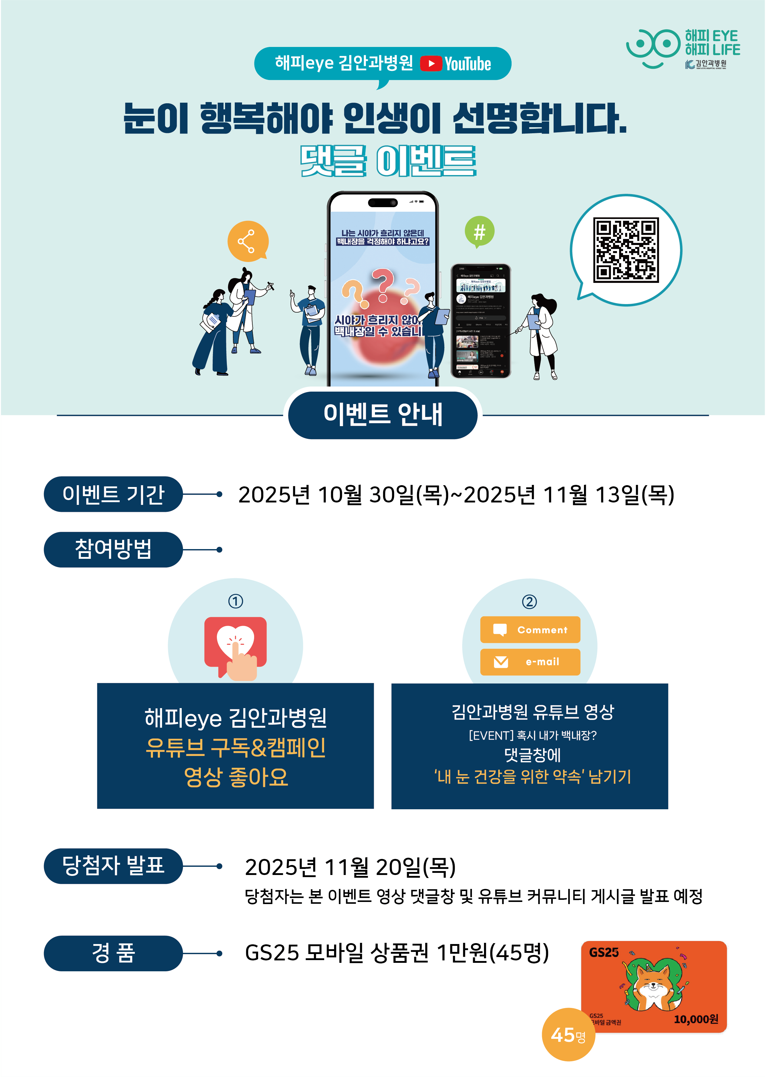 김안과 병원 유튜브 댓글 이벤트_GS25 모바일 상품권 1만원