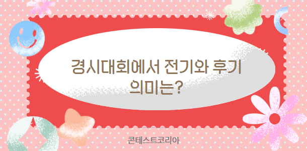 두번 열리는 경시대회는 전기, 후기로 나누어 각각 개최됩니다. 전기는 1학기(보통 5~6월)에. 후기는 2학기(보통 10~11월)에 시험 접수와 대회를 개최하는 것을 뜻합니다. 전기 경기대회는 상반기 경시대회로, 후기는 하반기라는 용어로도 대회를 개최합니다. 전기와 후기는 시험범위가 각각 다릅니다. 전기는 작년 전체와 올해 3월까지, 후기는 작년 전체와 올해 9월까지의 시험범위가 많습니다. |