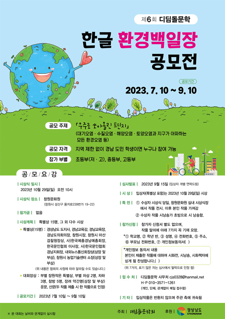 제6회 디딤돌문학 한글 환경백일장 공모전