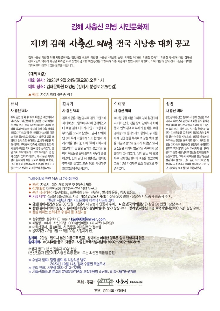 - 대회 장소: 김해문화원 대강당 (김해시 분성로 225번길)
