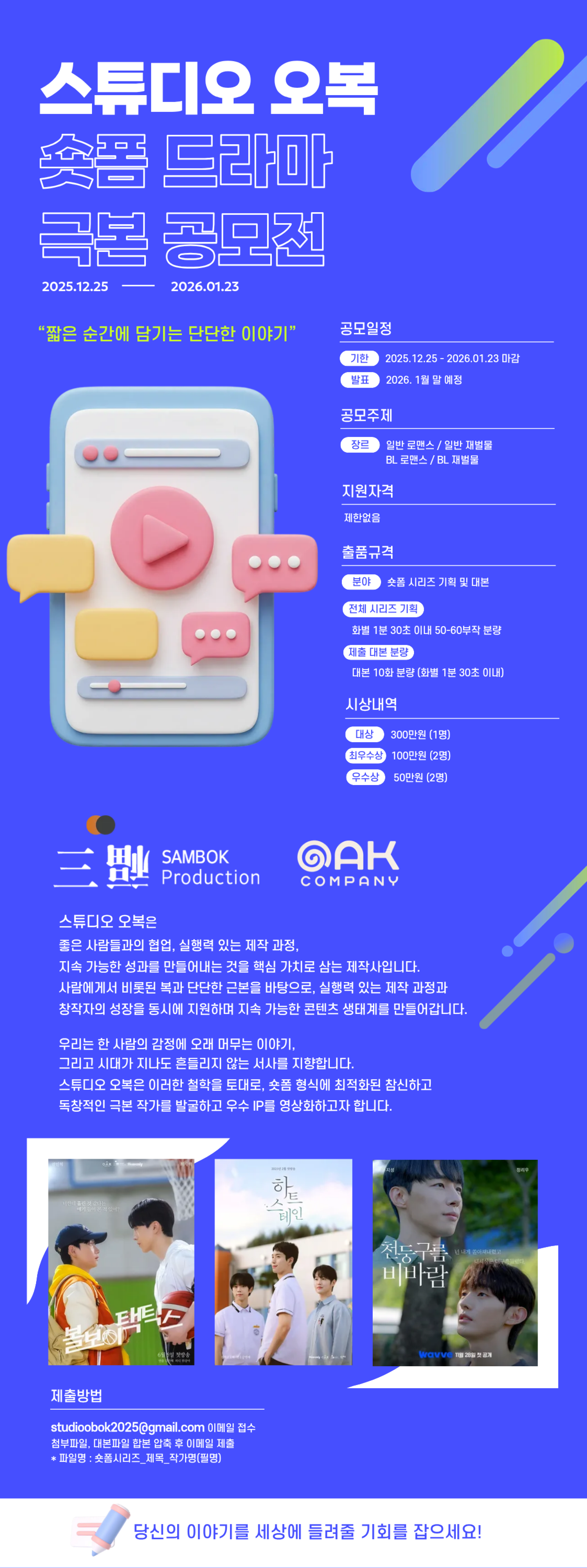 스튜디오 오복 숏폼 드라마 극본 공모전
