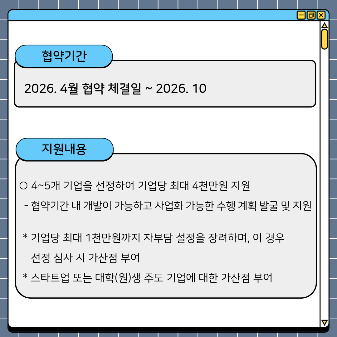 * 스타트업 또는 대학(원)생 주도 기업에 대한 가산점 부여