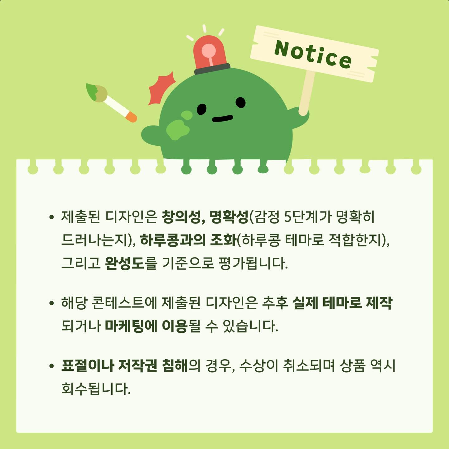 제 5회 하루콩 디자인 컨테스트에 참여해주세요 하루콩을 쓰면서 ‘아 이런 테마 있으면 좋을텐데…’ 했던 적이 있다면 지금이 기회! 제5회 하루콩 디자인 콘테스트에 참여해 내 아이디어도 뽐내고, 상품도 받아가세요