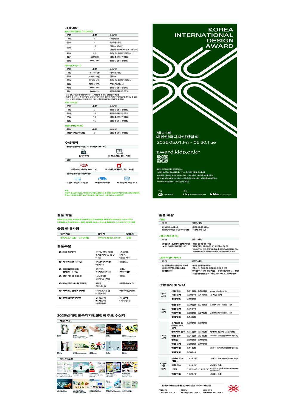 한국디자인진흥원 굿디자인실 굿디자인팀 대한민국디자인전람회 사업 담당자 : 연락처 031-780-2137, 이메일 kida@kidp.or.kr