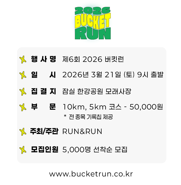 - 참가자 : 버킷런 기념품 티셔츠, 배번호/기록칩