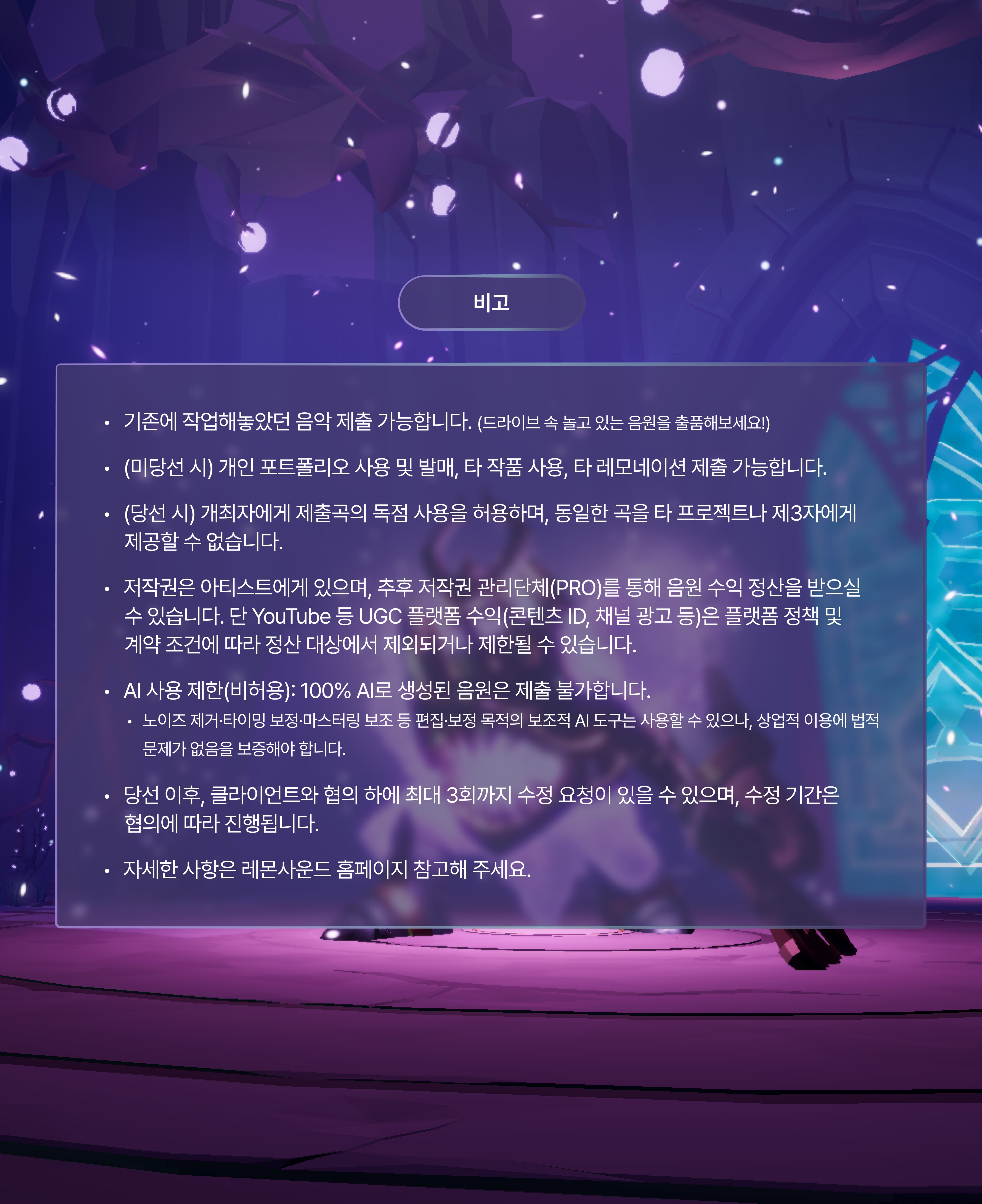 1 선정된 이후에는 디렉터 팀 및 레몬사운드 전문 사운드팀과 함께 음원이 최종 확정됩니다.