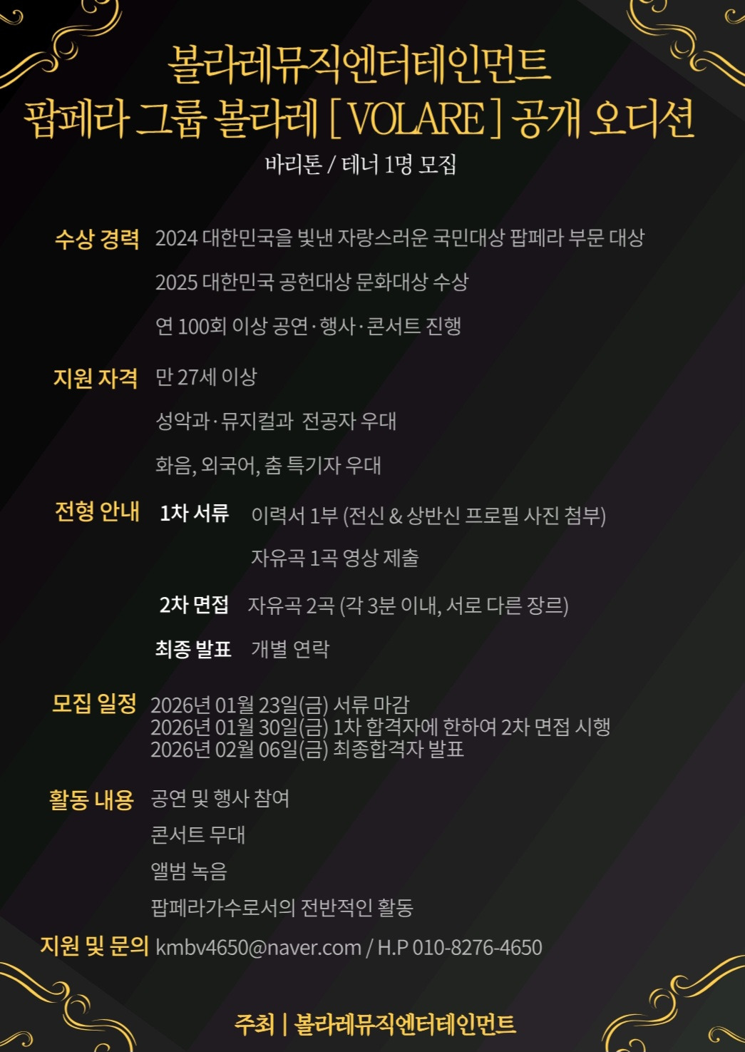 2026 팝페라그룹 볼라레 [VOLARE] 오디션